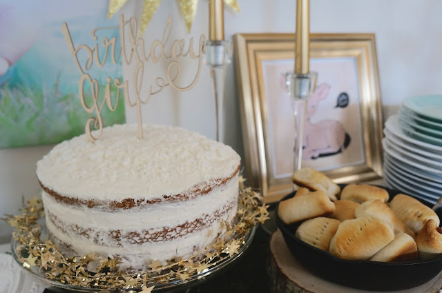 Her cake was probably my favorite part of the whole party. I made it the night before, (twice to be exact). My first attempt was a gigantic failure... I blame the eggs- two of my layers fell completely apart when I took them out of the oven. Soooooo, I was at Wal-Mart at 11:30 Friday night getting more cake mix because I was determined to make her cake. Reason begin, is that it was Juliet's Great-Grandmother's coconut cake recipe. She always made a coconut cake for her children's (my mom and aunt's) birthdays and I wanted to carry on the tradition for Juliet. However, my cake was from a Pillsbury box and my coconut milk was from a can but other than that is was pretty much the same.
