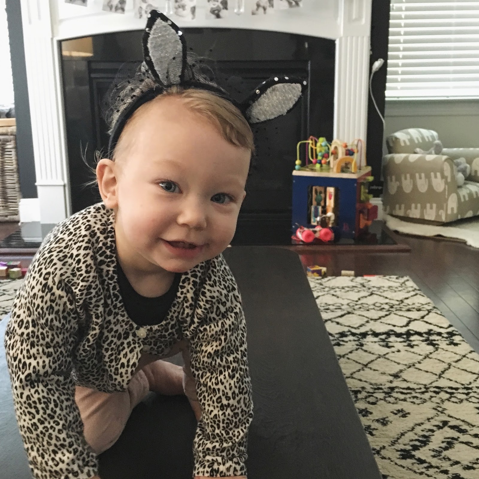 Thankfully, we had the mask left over from her party and the "antlers" were a last minute idea while we were on a walk. She was cute nonetheless.