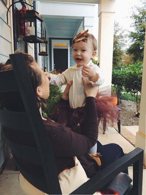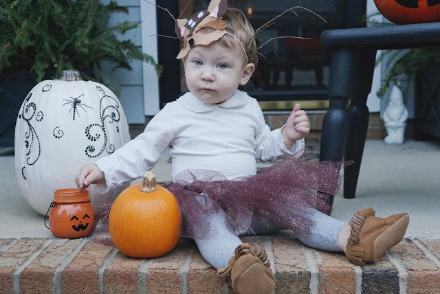 We had planned on her being a bunny, since that's what Joey calls her mostly, but we had to go with the deer idea because someone threw her bunny ears out of the car in Michael's parking lot Halloween Eve & I didn't realize it until we got home. HA! We're the hot mess express, I tell ya.