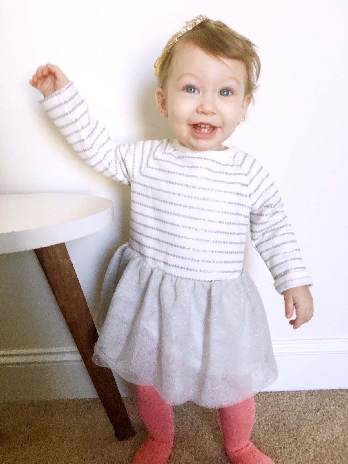 Other Milestones: Talking more and she has taken 3 steps... progress! Also we've started using just a little bit of fluoride toothpaste this month. Not everyday, just a couple times a week to make sure her teeth are getting really clean. For the other times, I just use the non-flouride toothpaste.