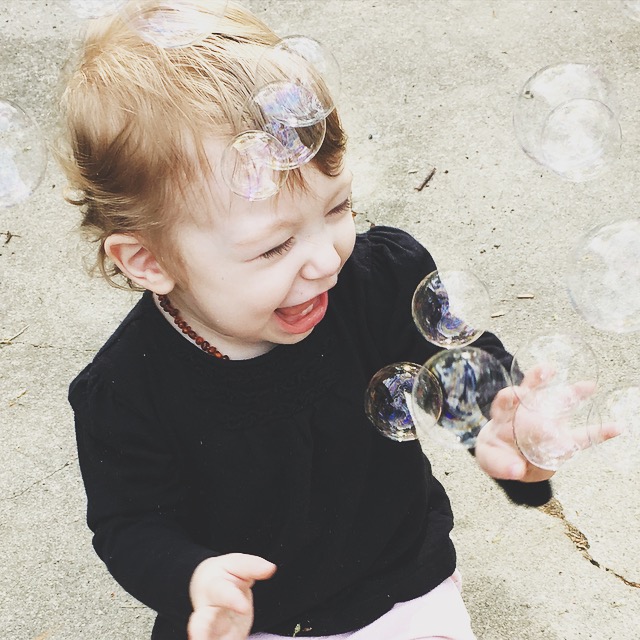 Watching her go through her Easter basket was definitely a highlight for us! Her favorite thing in her basket was this chicken popper... She thinks it's hysterical. (These are also great toys for children that need to strengthen their hand muscles.)