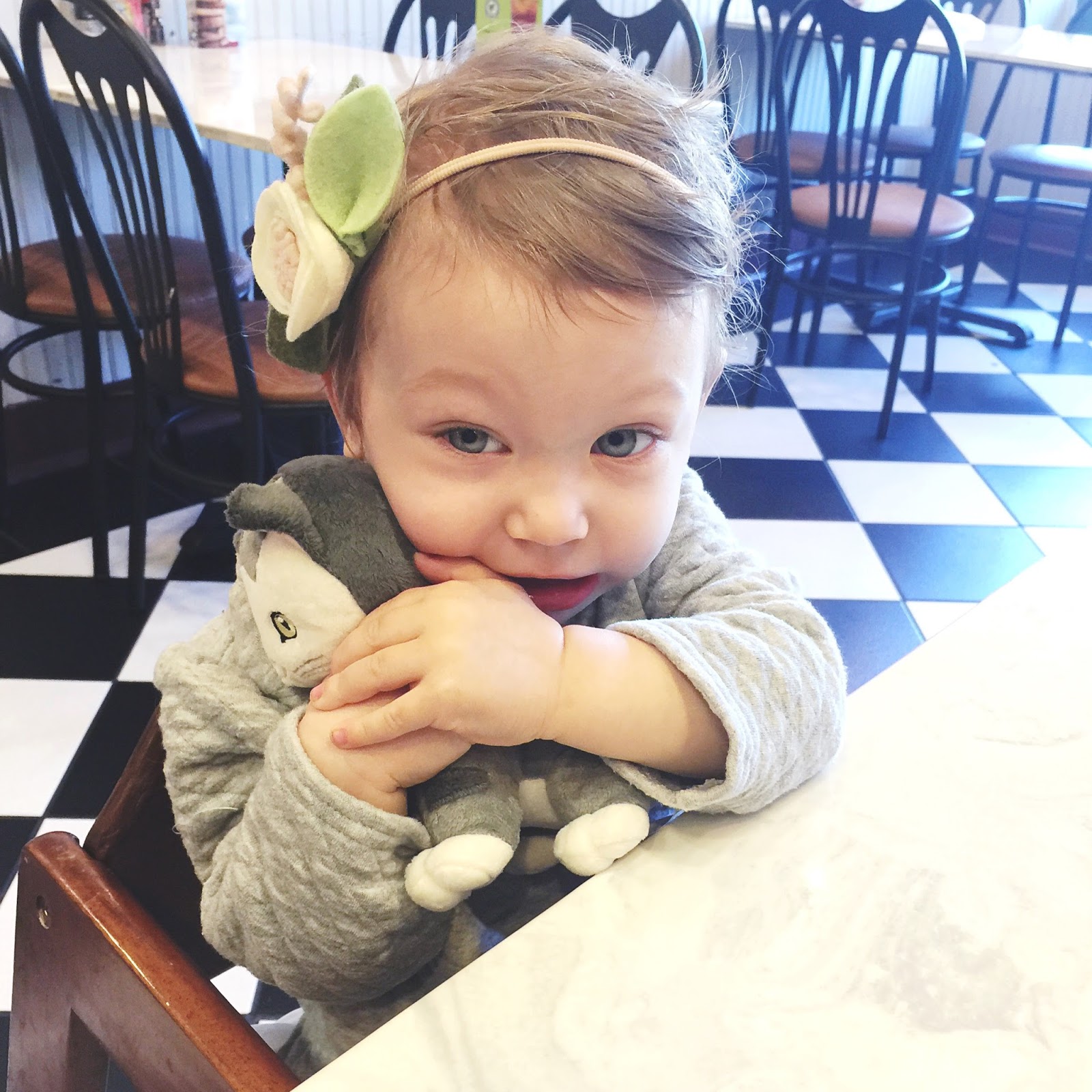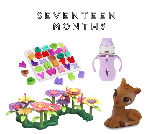 We've made it through the fourth molar popping through, moving into a new bedroom, a holiday, and an unexplained fever since month 16 but we made it! Month 17... how in the world? This girl is silly, smarter than we give her credit for, and not afraid to wave and speak to anyone. (And I mean anyone!) She says "hi" to everyone; everywhere and more than once.