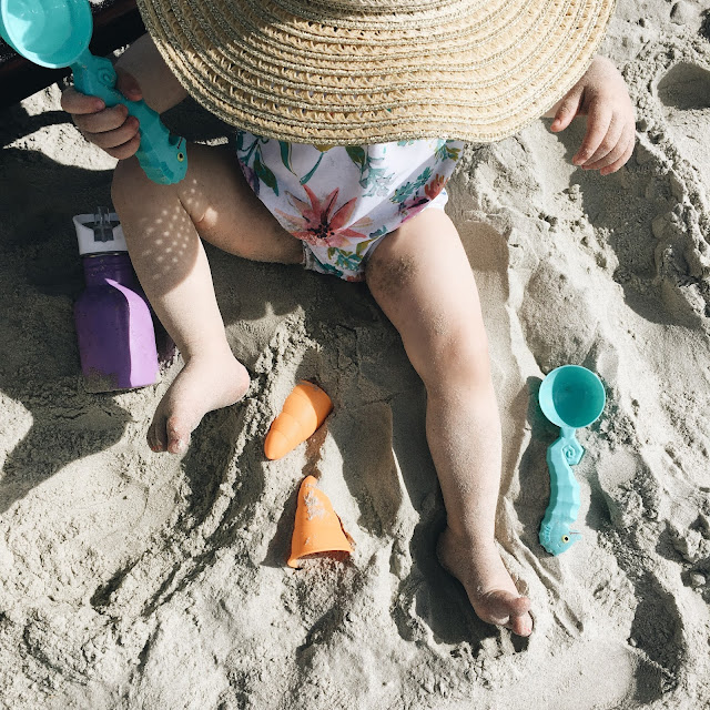 It isn't our official start of summer, but who would pass up a weekend getaway with friends?! It was our second annual Memorial Day trip to Ocean Isle, NC with a group of Charlotte friends. The weather was a sporadic mess, but it did allow us about 2-4 hours of beach time each day. Juliet loved the water... Well, until she fell face-first into it! Mom of the year, right here. Her favorite thing was playing in the sand. She was the epitome of quiet and content while scooping, pouring, shaking, sprinkling, digging, and eating. We got down there on Friday and drove back yesterday so it was short-lived, but worth it all the same! We had a blast eating, chatting, sight-seeing, and laughing our heads off! I thought I'd share a couple of pictures before our day really got cray-cray with de-sanding everything. Hope you all had a relaxing and beautiful weekend!
