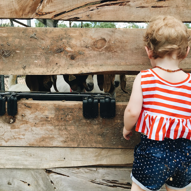 Our trip to Mississippi, the first week of July. She got to see 3 goats, pick blueberries, eat whatever she wanted, and celebrate her cousin's 4th birthday!