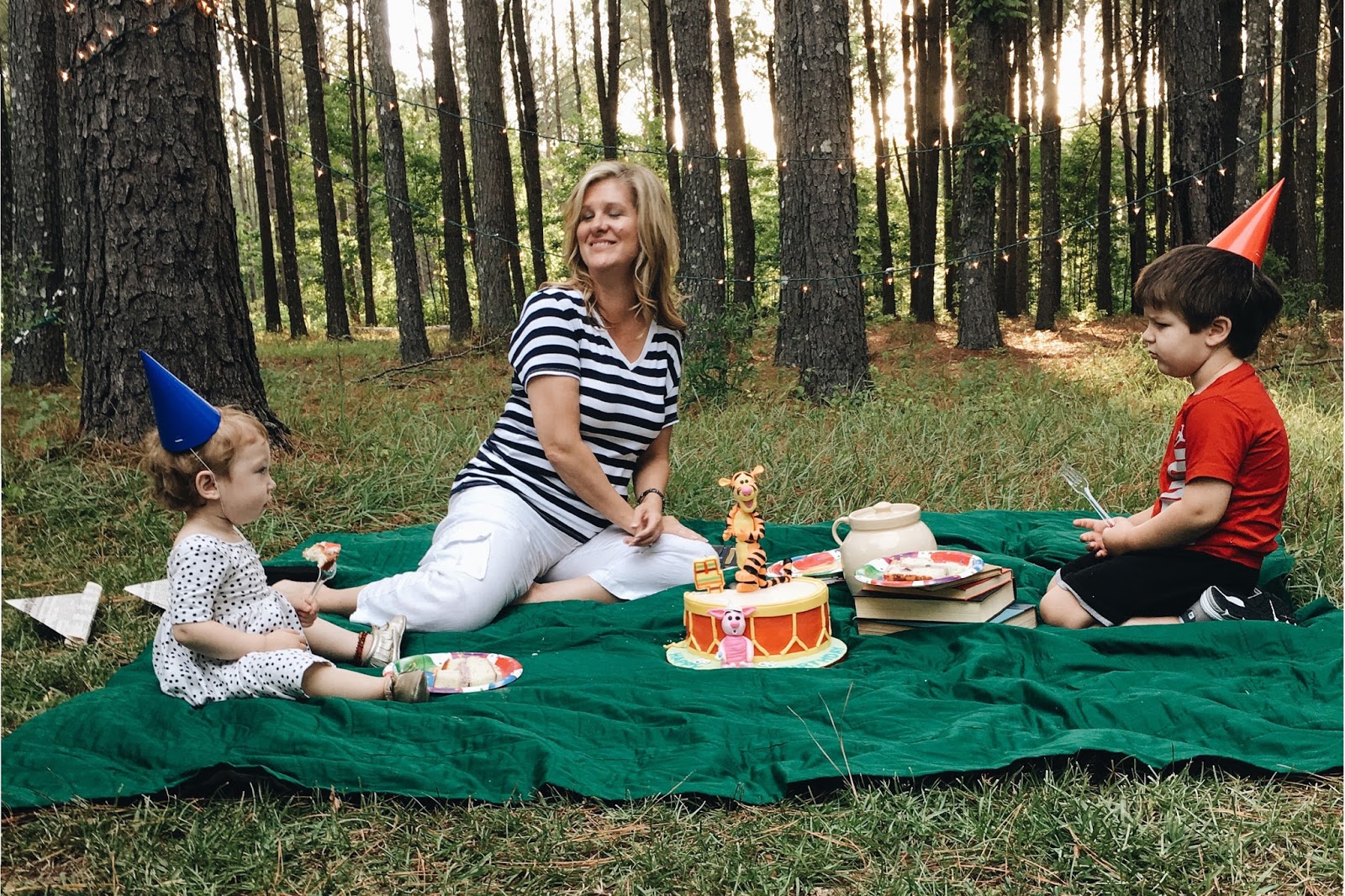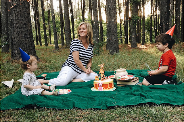 My brother's little boy turned 4 while we were there so we got to create a little party with family. My Mom ordered him the cutest cake, I laid a blanket down outside and strung a few lights to help celebrate. This picture of them with my sis-in-law, starring each other down over cake makes me laugh so hard.