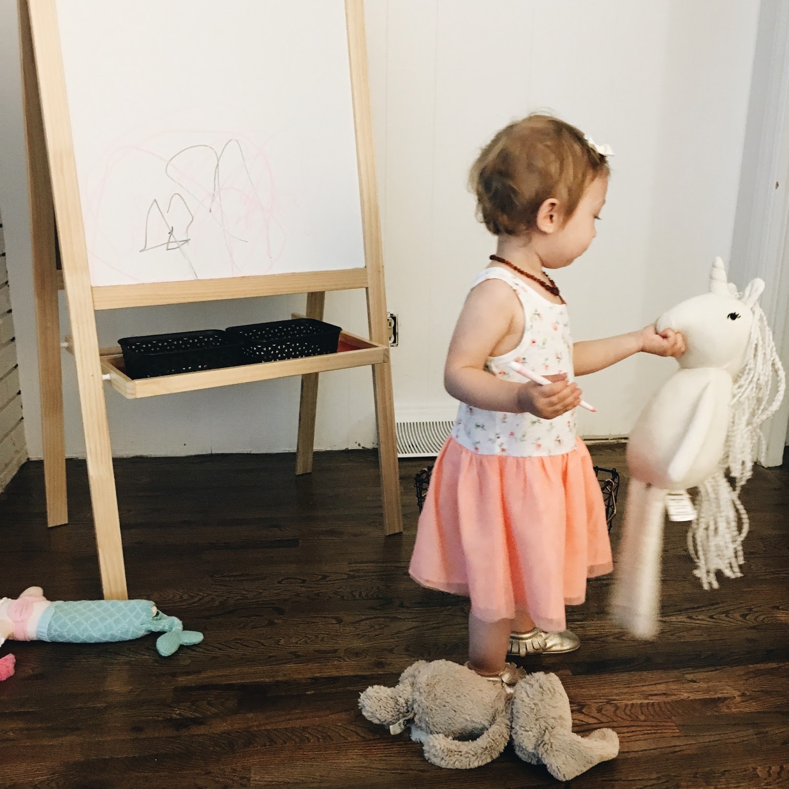Favorite Activities: Playing in the dirt outside. She would sit in the dirt all day; scooping & pouring, if I would let her, no matter the temperature. She also loves writing on her dry erase easel with markers... while watching Pooh, of coarse. She loves to color, play with my makeup brushes, and now that we have a kitchen... help me cook. We are shopping for a kitchen stool for her to use while I cook and I've found one on Amazon that I like. Do you guys use one or have any suggestions?