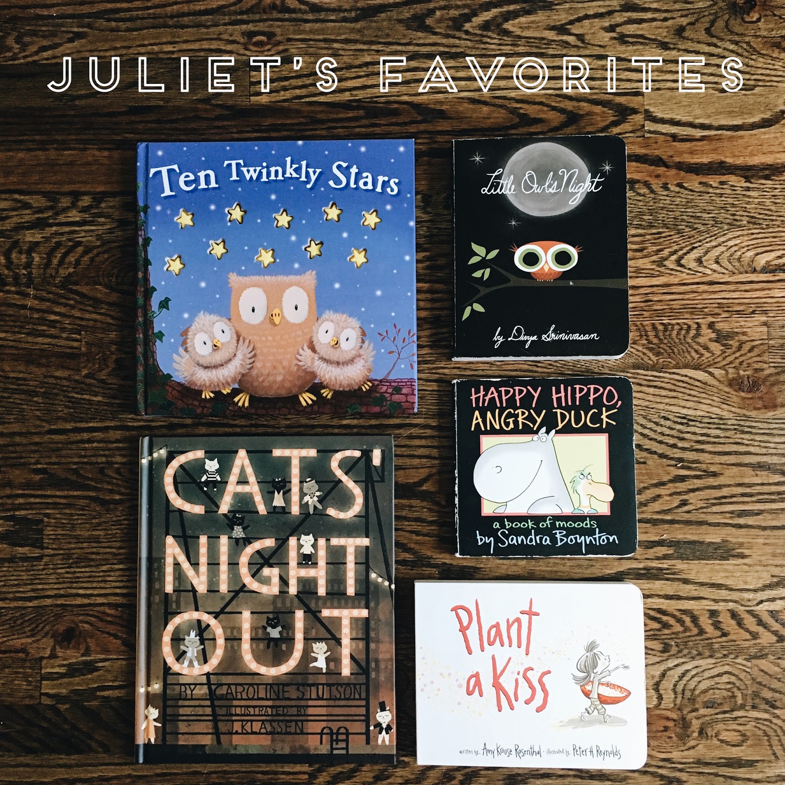 I loved reading Juliet Plant a Kiss, when she was younger because it has one or two words per page. This came in handy when she went through the stage of wanting to only turn the pages and NOT read. It allowed me to actually read a storyline to her while she sifted the through the pages at lightening speed.
