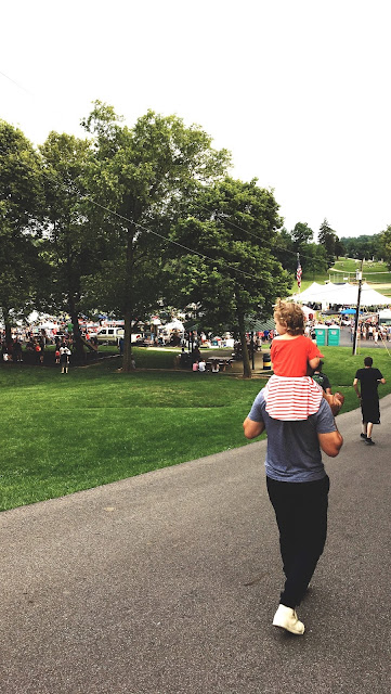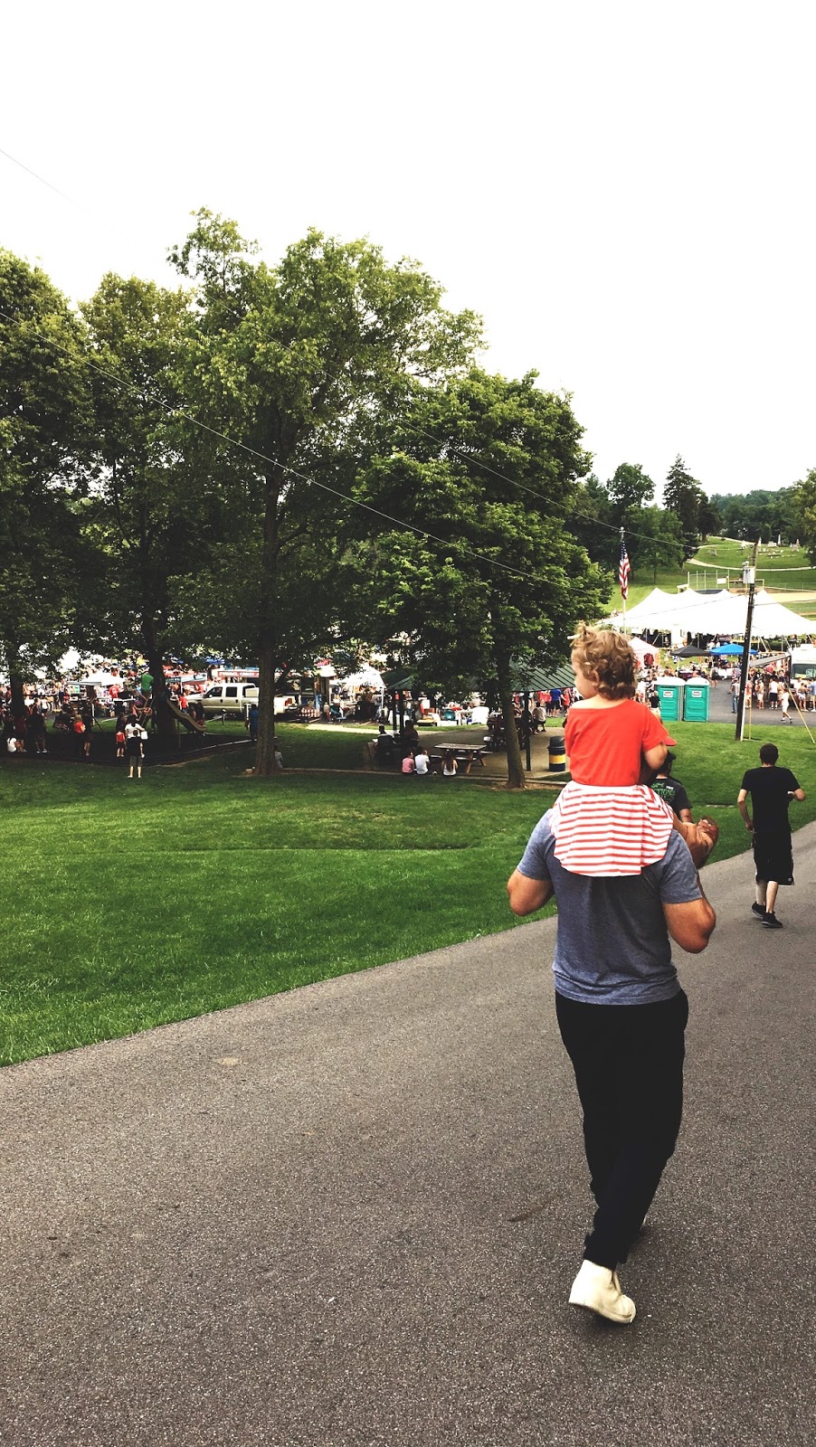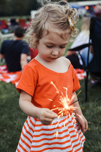 We tagged along to their local Fourth of July festival on Tuesday, and it was legit Sandlot style. It was on a baseball field, kids running everywhere by themselves, (including Juliet at times), food trucks, balloons, live music and of coarse fireworks. It was Jules' first time to see fireworks and luckily we didn't have to use any ear plugs... and it's a good thing because I didn't have any. And the Prepared Mom Award goes to.... drumroll.....