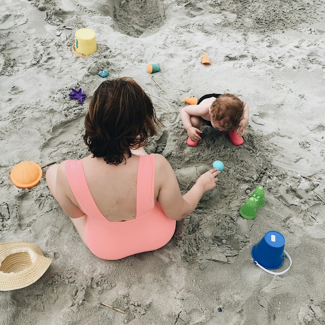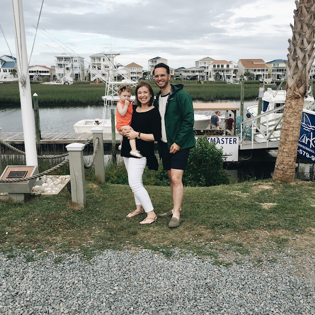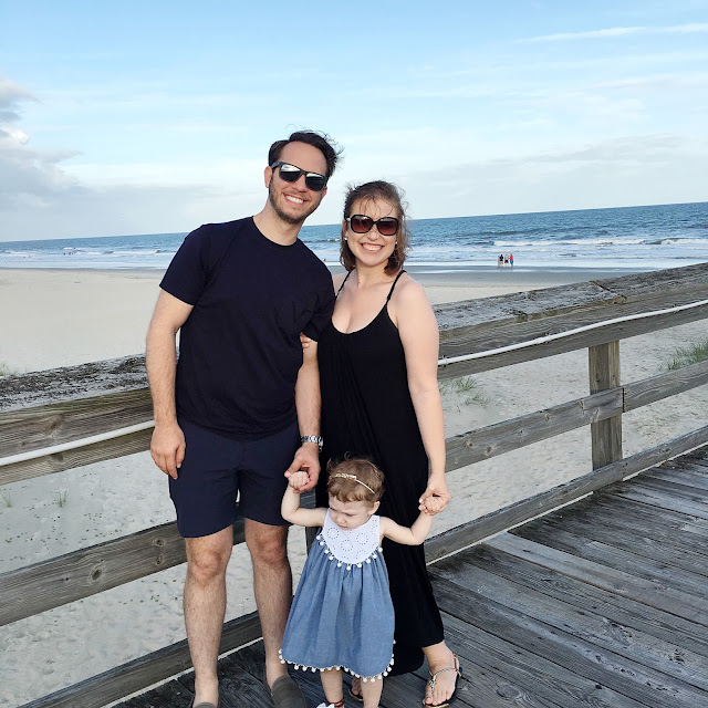 It isn't our official start of summer, but who would pass up a weekend getaway with friends?! It was our second annual Memorial Day trip to Ocean Isle, NC with a group of Charlotte friends. The weather was a sporadic mess, but it did allow us about 2-4 hours of beach time each day. Juliet loved the water... Well, until she fell face-first into it! Mom of the year, right here. Her favorite thing was playing in the sand. She was the epitome of quiet and content while scooping, pouring, shaking, sprinkling, digging, and eating. We got down there on Friday and drove back yesterday so it was short-lived, but worth it all the same! We had a blast eating, chatting, sight-seeing, and laughing our heads off! I thought I'd share a couple of pictures before our day really got cray-cray with de-sanding everything. Hope you all had a relaxing and beautiful weekend!