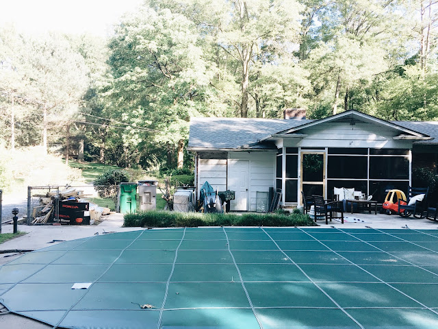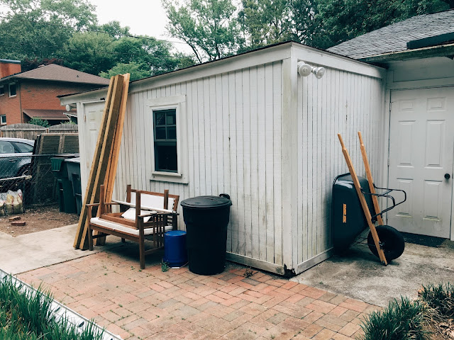 Now, by no means is this an "after" photo. In the place of the shed now lays the sink, dishwasher, and debris from our kitchen, but at least the shutters are gone that are pictured above. Like I've said before, it's just one gigantic mess after another but it's coming together beautifully and we couldn't be prouder! When we're finished it'll be our little piece of heaven. Hope you all are having a great start to the week that involves no demolition, but if it does I hope this was a little motivation!